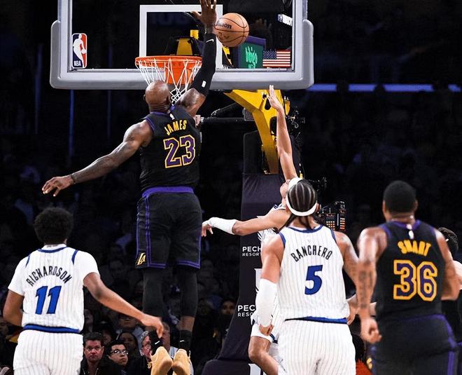 魔术进攻,贝恩大心脏三分命中反超湖人1分,随后湖人暂停通过发边线球战术拿到了快速2分,重新反超1分。接下来的一个回合,班凯罗中投不中,卡特抢到篮板球补篮得手,魔术又重新反超1分,从慢镜头来看,东契奇还有打手,但是裁判没有吹罚。湖人最后一攻,东契奇犹豫没有出手,传球给了詹姆斯,后者三分未果,最终湖人109-110憾负,遭遇两连败,排名下滑到西部第6名。