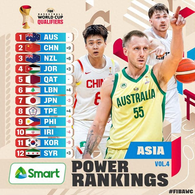 国际篮联官宣亚洲实力榜单,中国男篮重返第二